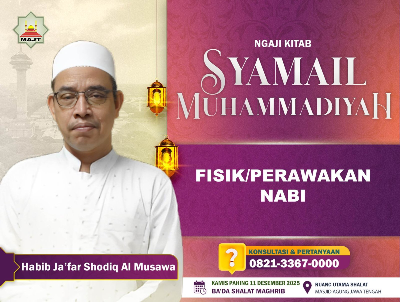 Mari hadir dan ikuti Ngaji Ngaji Kitab Syamail Muhammadiyah, ba'da shalat Maghrib di ruang utama shalat Masjid Agung Jawa Tengah, pada :