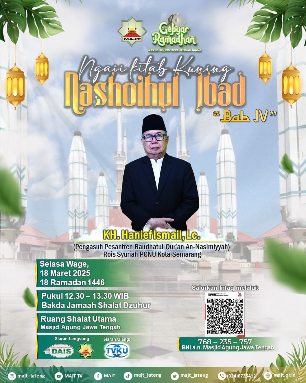 Mari hadir dan ikuti Ngaji Kitab Kuning Nashoihul Ibaad Bakda Dzuhur Selama Bulan Ramadan di ruang utama shalat Masjid Agung Jawa Tengah, pada