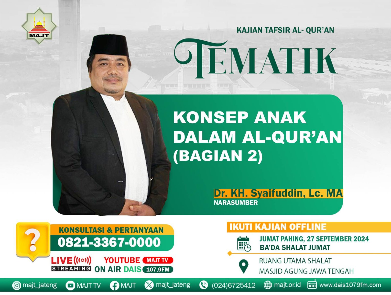Mari hadir dan ikuti Kajian Tafsir Tematik di Ruang Shalat Utama Masjid Agung Jawa Tengah, pada: