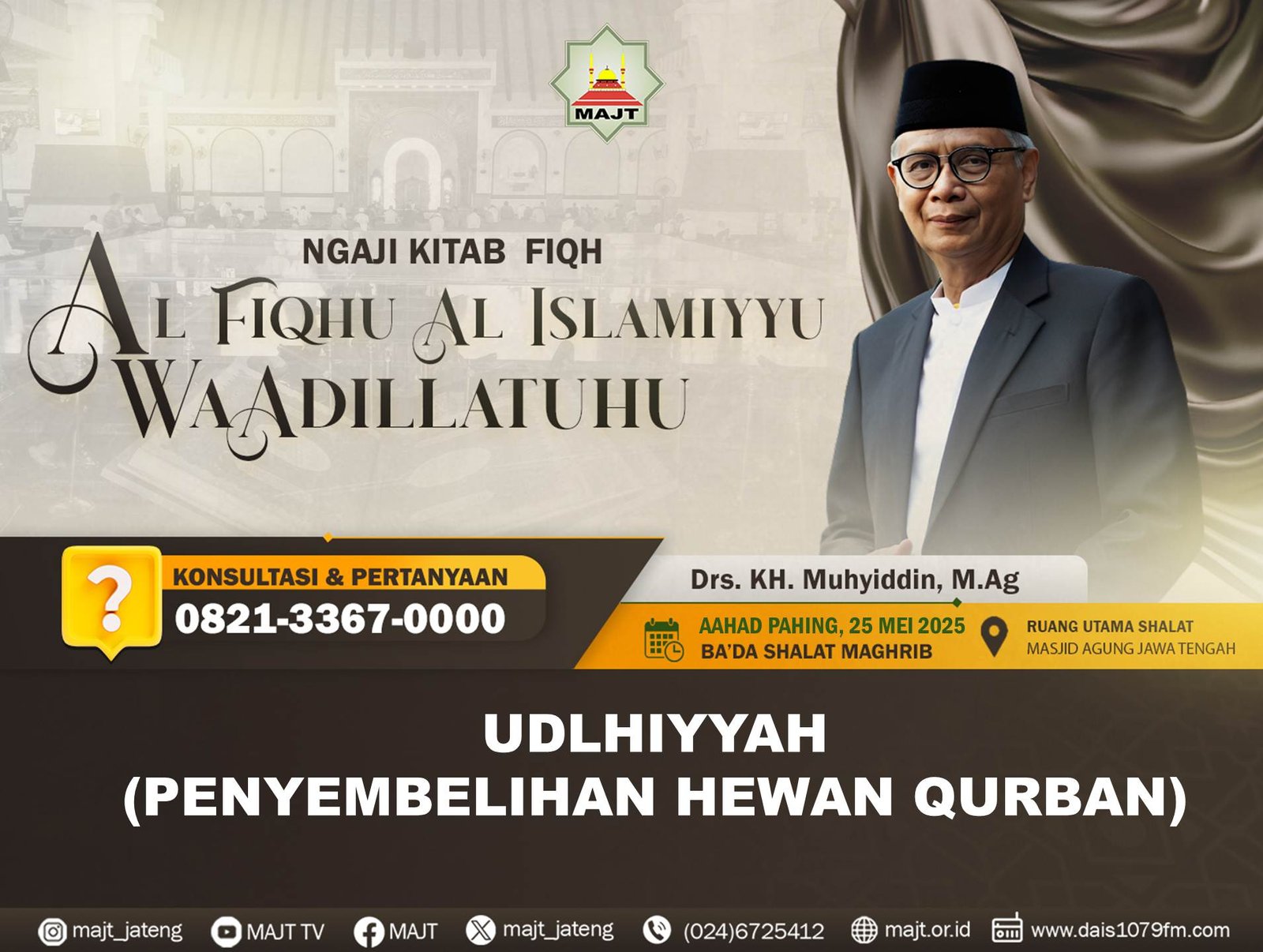 Mari hadir dan ikuti ngaji rutin Kitab Kitab Al Fiqhu Al Islamiyyu Wa Adillatuhu, Ahad  ba'da maghrib di ruang utama shalat  Masjid Agung Jawa Tengah, pada :