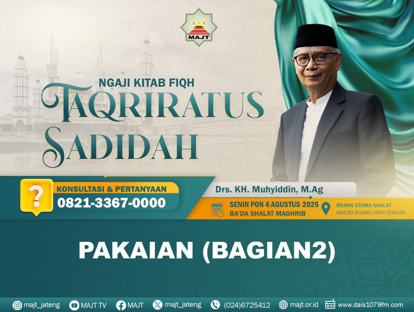 Mari hadiri dan ikuti majelis-majelis ilmu di Masjid Agung Jawa Tengah, dan bagi yang berhalangan hadir bisa menyimak kajian ini yang akan disiarkan langsung melalui channel Youtube: