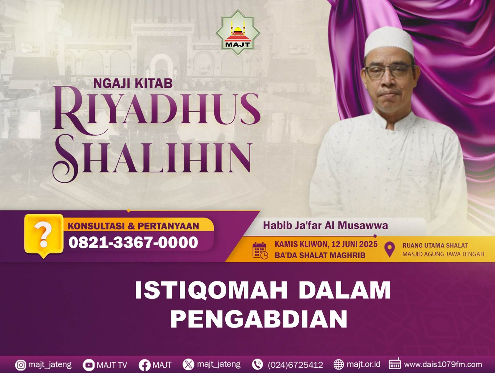 Mari hadir dan ikuti Ngaji  Kitab Riyadhus Shalihin ba'da shalat Maghrib di ruang utama shalat Masjid Agung Jawa Tengah, pada :