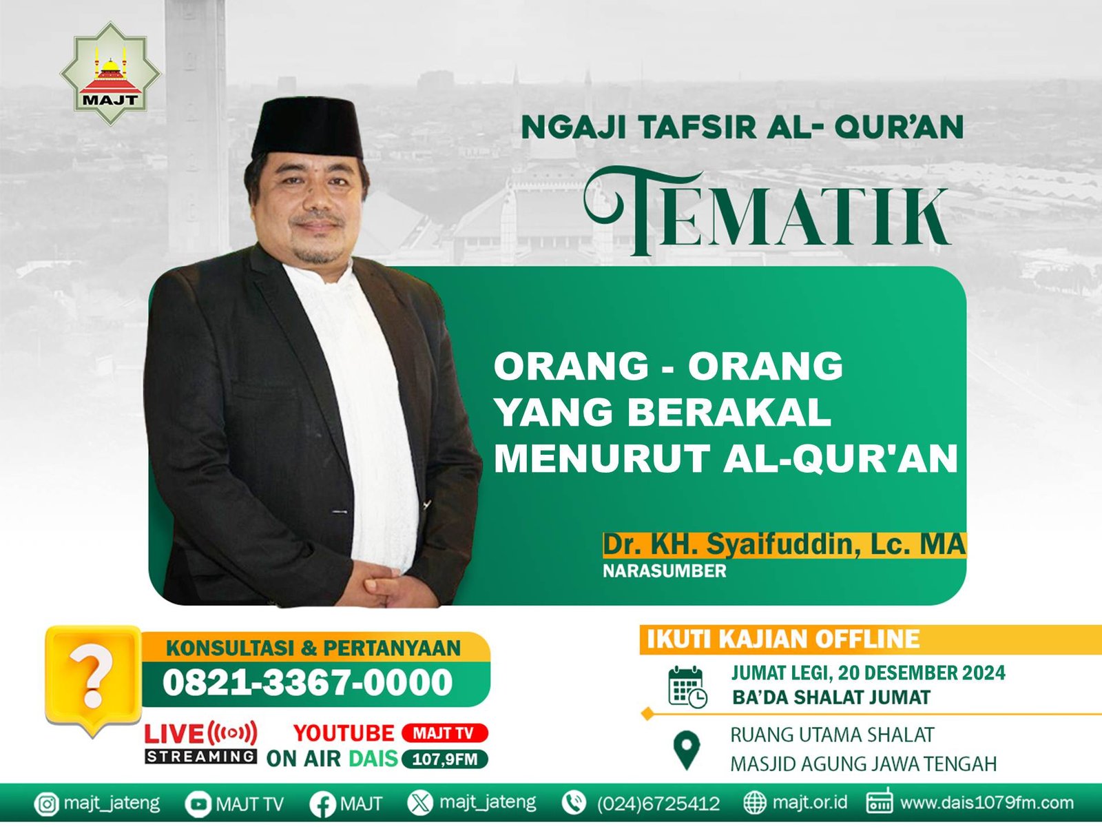 Mari hadir dan ikuti Kajian Tafsir Tematik Di Ruang Shalat Utama Sholat Masjid Agung Jawa Tengah, pada:
