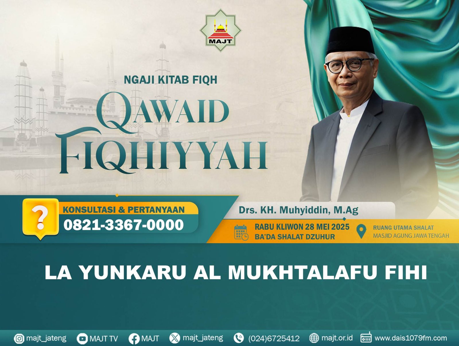 Mari hadir dan ikuti Ngaji Rutin Kitab Qawaid Fiqhiyyah, Rabu Bakda Dzuhur di ruang utama shalat  Masjid Agung Jawa Tengah, pada :