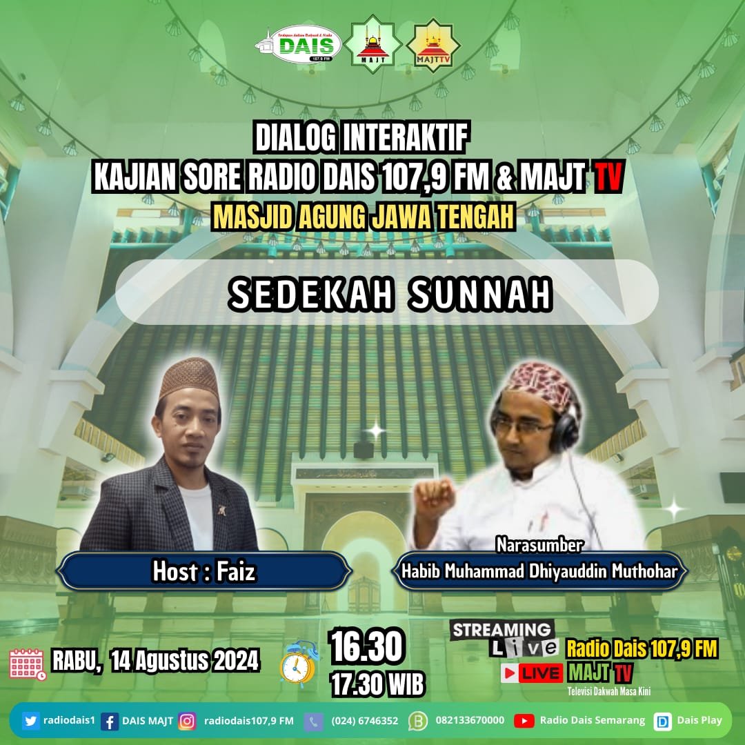 Jangan lewatkan Kajian Sore Interaktif yang akan disiarkan di Radio Dais 107.9 FM & MAJT TV